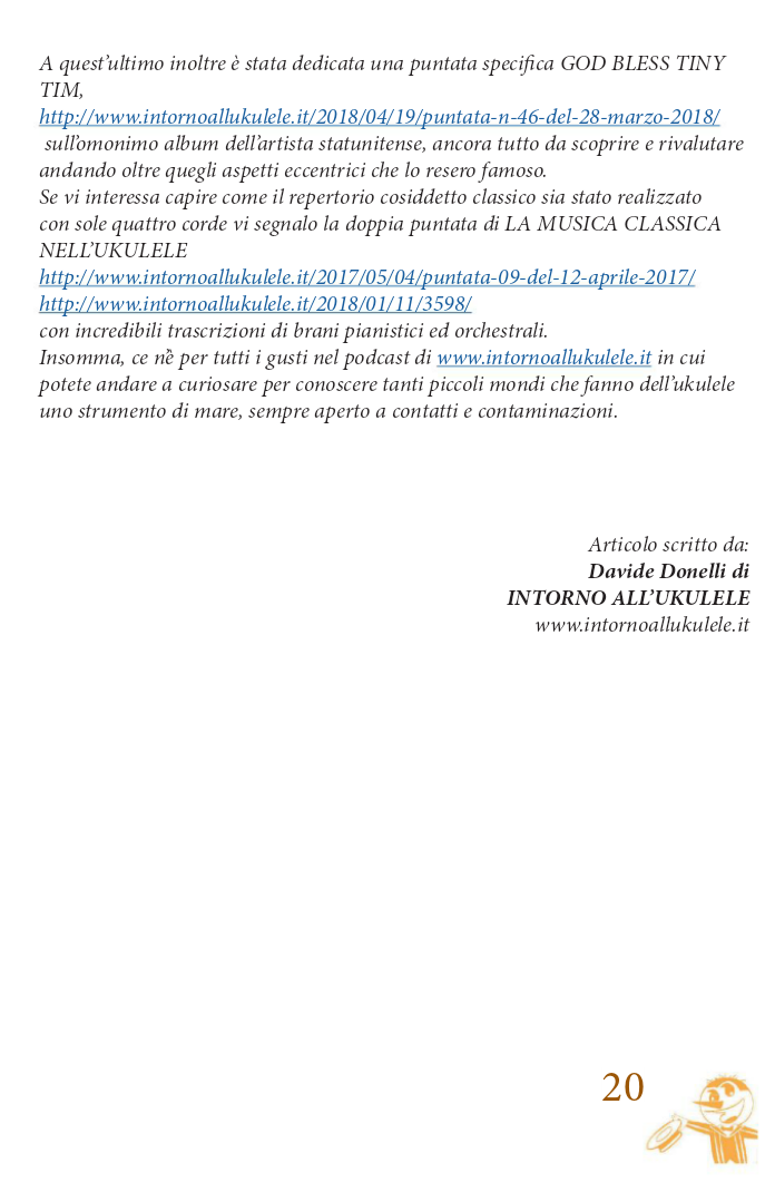 Insomma, ce n’è per tutti i gusti nel podcast di www.intornoallukulele.it in cui potete andare a curiosare per conoscere tanti piccoli mondi che fanno dell’ukulele uno strumento di mare, sempre aperto a contatti e contaminazioni.