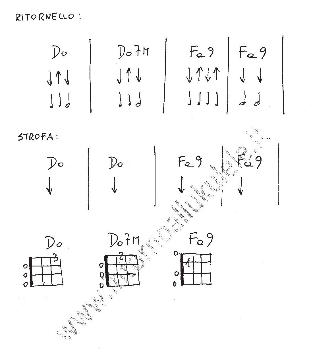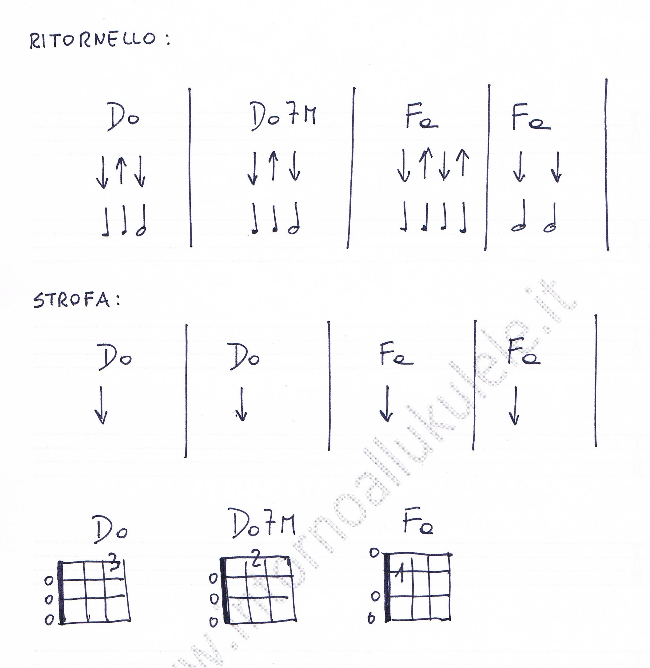 A seguire propongo sia la melodia intavolata che la sequenza ritmico armonica: