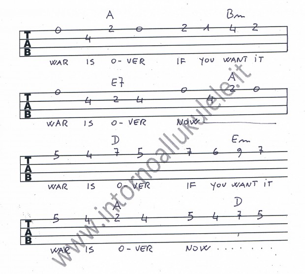 Il brano che ho scelto non ha bisogno di molte presentazioni: pubblicato nel 1971 da John Lennon e Yoko Ono, “Happy Xmas” è una canzone pacifista e natalizia allo stesso tempo. Pare che il canto sia ispirato a  Stewball , una canzone folk conosciuta anche con il titolo Go ‘Way F’om Mah Window, un canto di lavoro dei neri americani. Dal punto di vista musicale ha una melodia molto lineare, cadenzata e quindi facile da memorizzare.  Tralascerei l’accompagnamento con l’ukulele, di cui è pieno il web di esempi, per puntare l’attenzione proprio sulla melodia, spesso trascurata, come se l’ukulele debba essere sempre uno strumento ritmico armonico, con la funzione di sostenere il canto, e non abbia tra le sue peculiarità anche quella di “cantare”. Questo brano infatti  si presta bene a mettere in risalto la cantabilità.