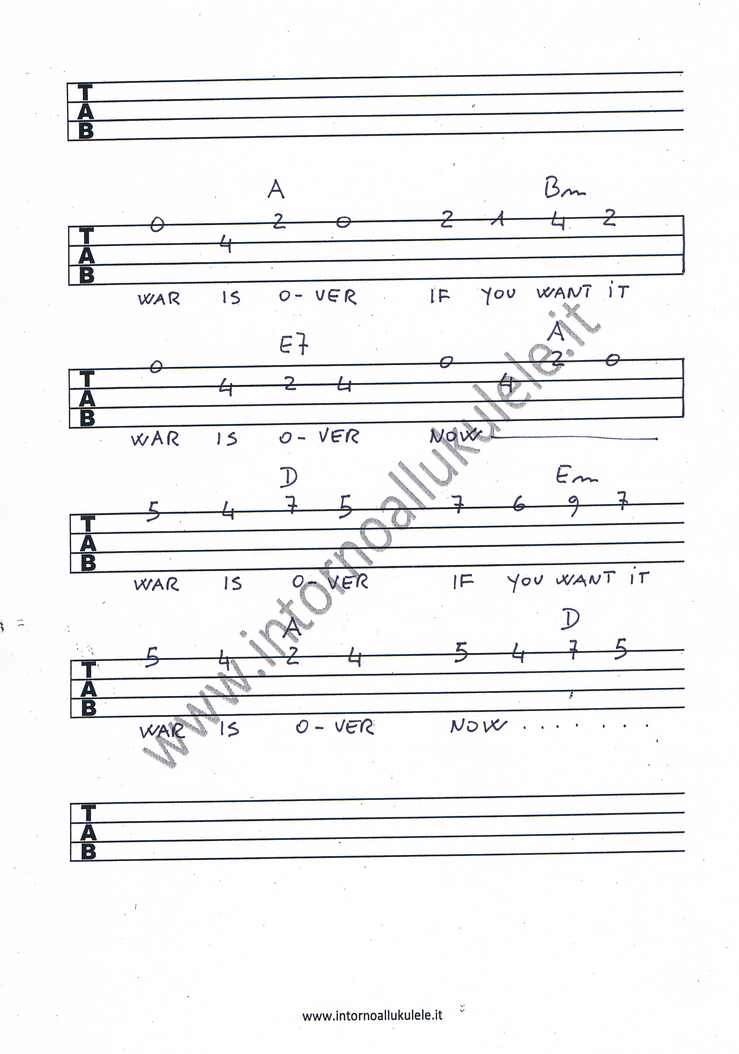 CCF28122015_00000Certamente il controcanto “War is over if you want it” è il punto più riuscito del brano, probabilmente anche l’unico veramente originale: brevi frasi di quattro note che si ripetono regolarmente sulla pulsazione a mo’ di contrappunto sulla melodia principale. Buona lettura!CCF28122015_00001
