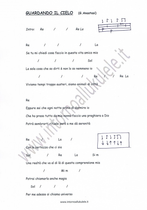 Rispondo alla richiesta di Salvatore che in un gruppo FB cerca gli accordi della canzone appena presentata da Arisa a Sanremo: GUARDANDO IL CIELO.