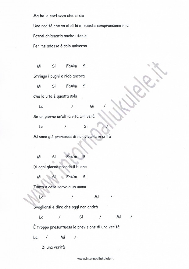 Devo ammettere che è proprio un bel brano, perfetto per lei, anche se non so quanto adatto alla sonorità squillante dell’ukulele, ma vale la pena provare. Ho quindi deciso di trascriverne gli accordi.