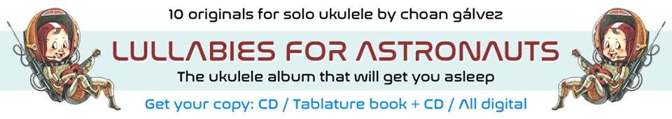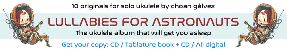 tica, da miniatura, immediata e cesellata. Trattandosi di ninna nanne l’ascolto di queste ” lullabies for astronauts” trasmette subito l’idea di composizioni con una precisa e univoca espressività serena, intimistica, raccolta e riflessiva, senza ricorrere a virtuosismi o gesti eclatanti. Del resto anche la precedente raccolta si distingueva per essere un prodotto discografico un po’ anomalo: in quel caso la varietà dei temi proposti accompagnava l’ascoltatore in situazioni musicali differenti, passando dalla danza popolare al brano melodico fino al pezzo strumentale con richiami polifonici anche sofisticati. In questo caso invece Choan Galvez sceglie di esplorare il mondo della “cançion de cuna”, come si dice nella sua terra, la Spagna, ma con il medesimo approccio all’ukulele che definirei anticonvenzionale. Infatti usa esclusivamente la tecnica del “punteado”, il pizzicato, evitando “rasgueados” e quindi distinguendosi dalla maggior parte degli ukulelisti che ricorrono giustamente allo “strumming” come elemento tecnico espressivo più caratteristico.