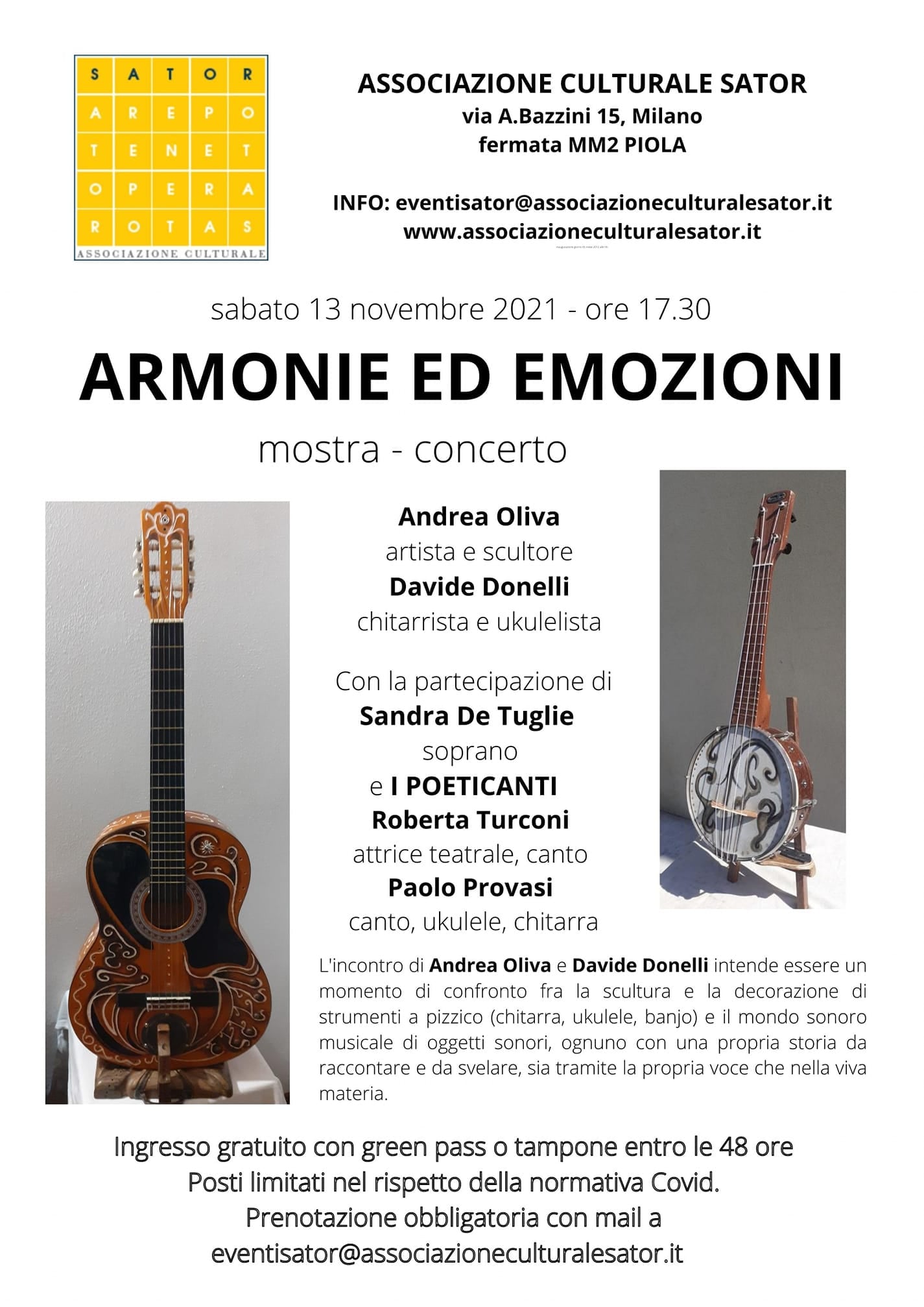 13 Novembre 2021 Concerto – Mostra “Armonie ed Emozioni”, Ass. Culturale SATOR, Milano Video 1 Video 2 Locandina