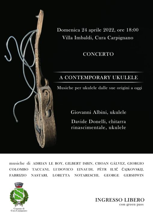 24 Aprile 2022 Concerto “A Contemporary Ukulele” (in duo con Giovanni Albini), Villa Imbaldi, Cura Carpignano (PV) Locandina