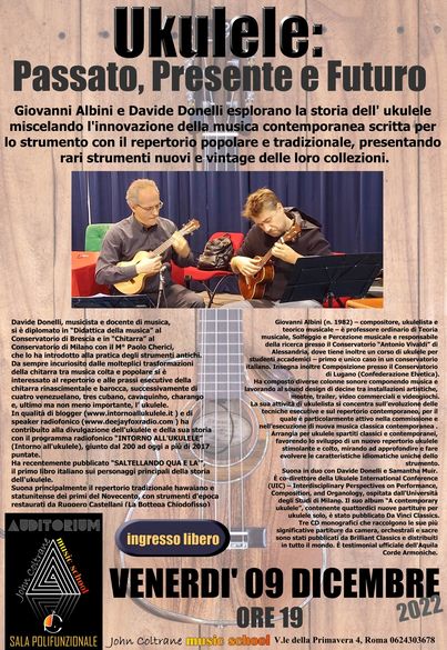 10 Dicembre 2022 Concerto “Ukulele: passato, presente e futuro” Auditorium John Coltrane School, Roma Locandina
