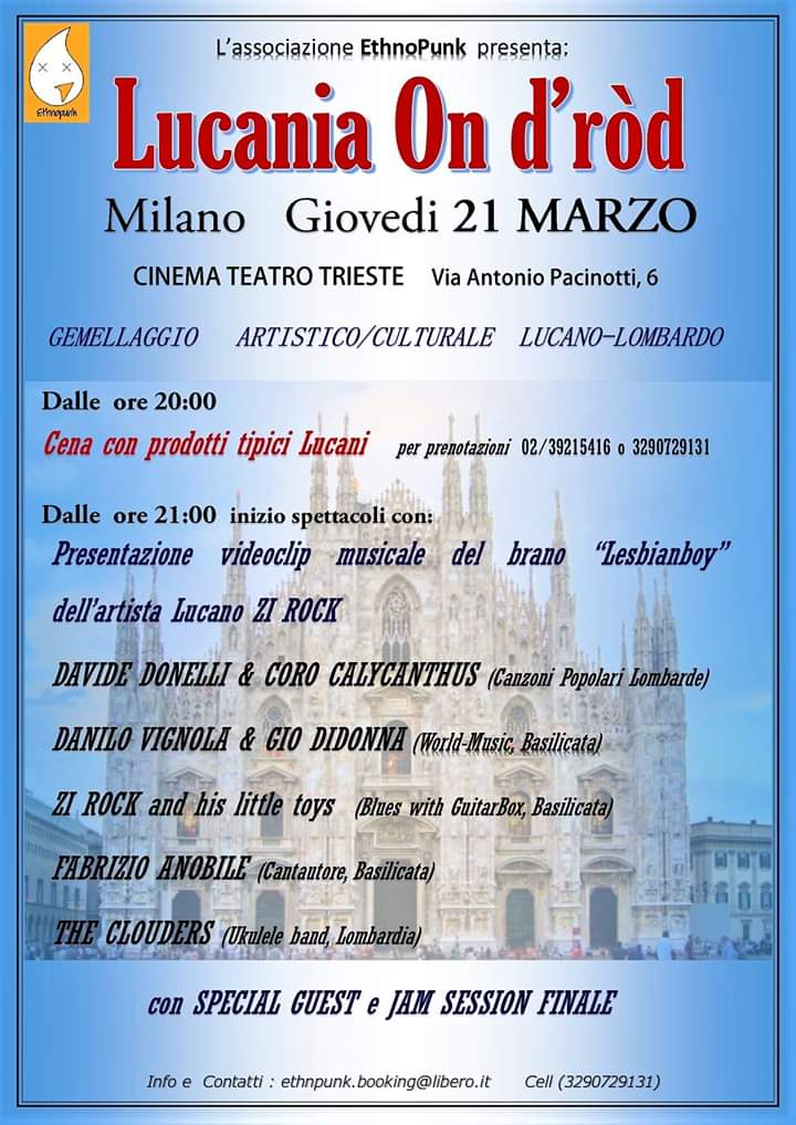 21 Marzo 2019 Lucania On d’ròd , con il Coro Calicanthus, Cinema Teatro Trieste, Milano Locandina