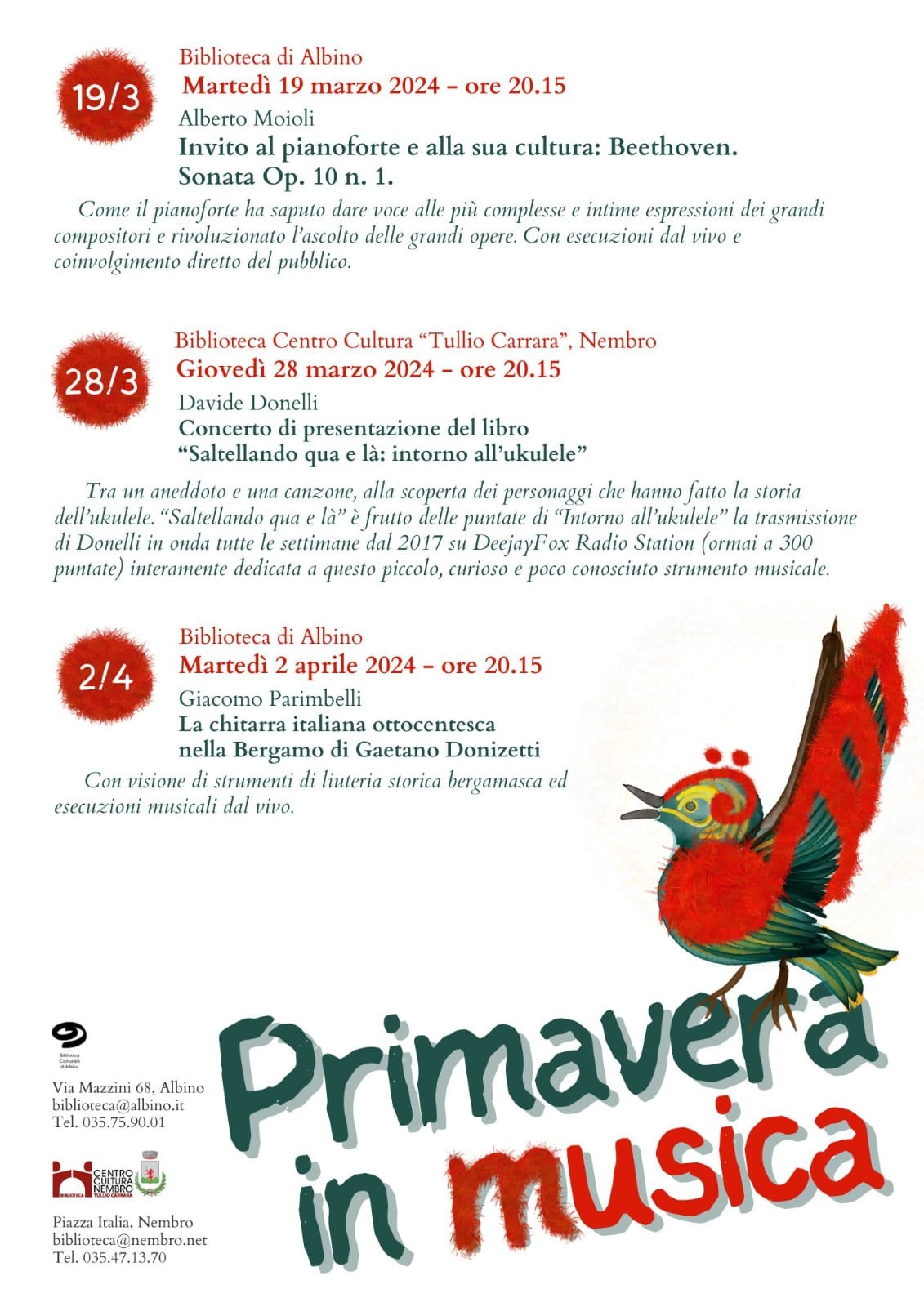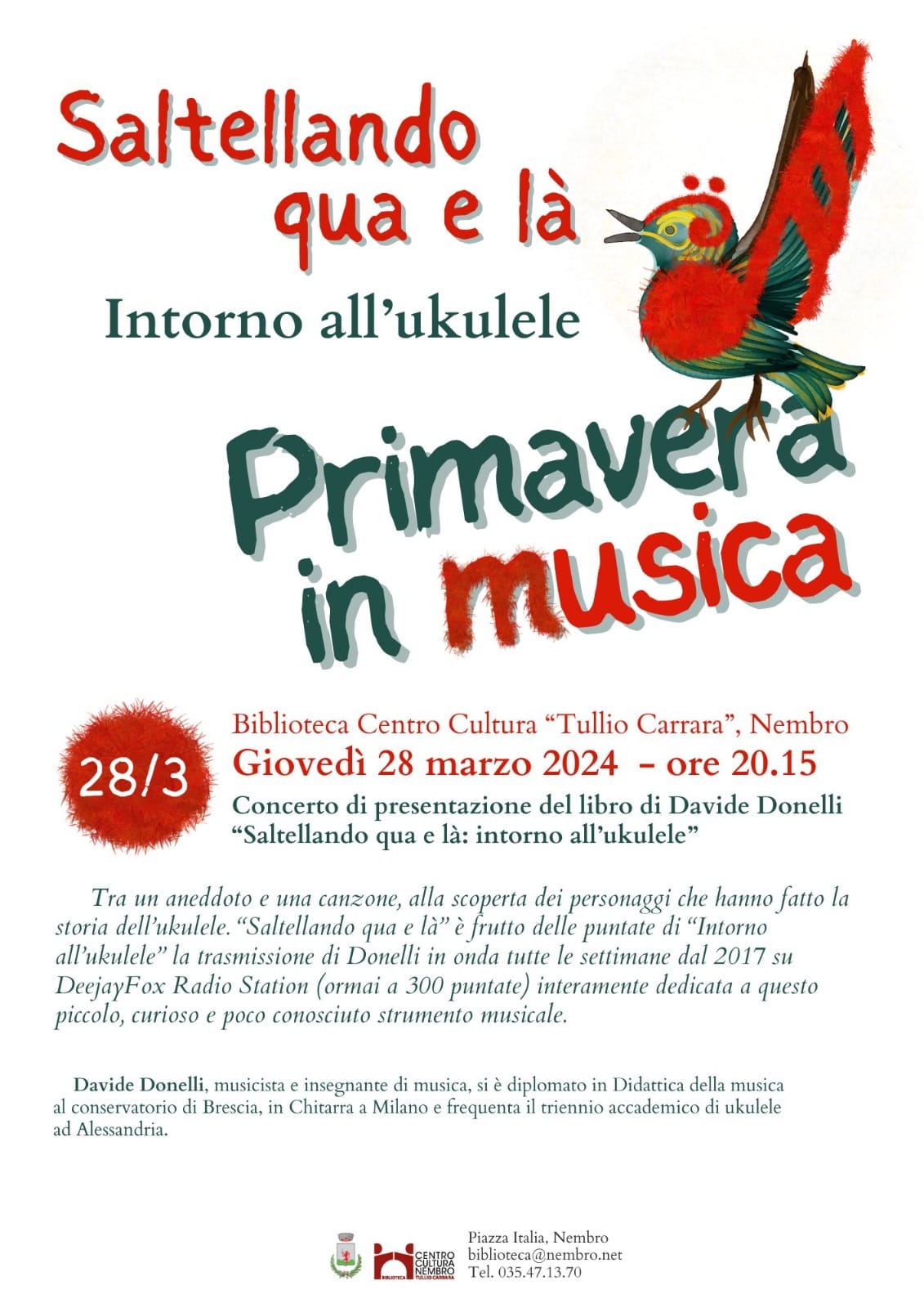 28 Marzo 2024 Concerto: Saltellando qua e là, Primavera in Musica, Biblioteca Centro Cultura di Nembro (BG) Locandina1 Locandina2
