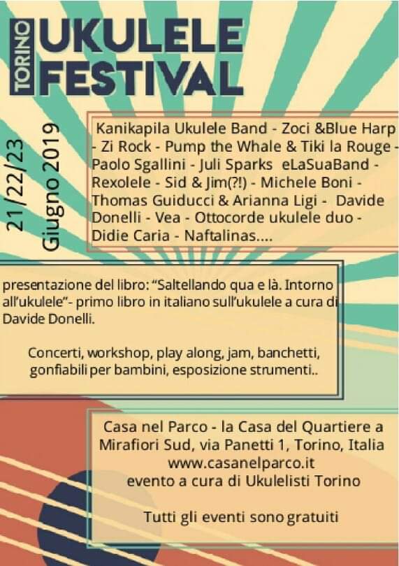 22 Giugno 2019 Presentazione del libro “Saltellando qua e là”, Torino Ukulele Festival Locandina